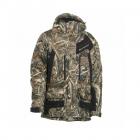 Le camouflage qui revêt cette tenue est le camouflage américain Realtree Max 7, tridimensionnel pour un maximum de réalisme sur le terrain. Grâce à ses massettes, roseaux et autres broussailles haute définition, il se marie parfaitement avec les environnements propices à la sauvagine. En matière de dissimulation, il est très important de faire en sorte que les formes offrent du contraste à distance. La combinaison des motifs végétaux et des éléments sombres (genoux, côtés, etc.) donne un contraste important pour représenter l’eau saumâtre, de la saleté ou de la boue ; sans doute un des camouflages les plus réalistes du marché.