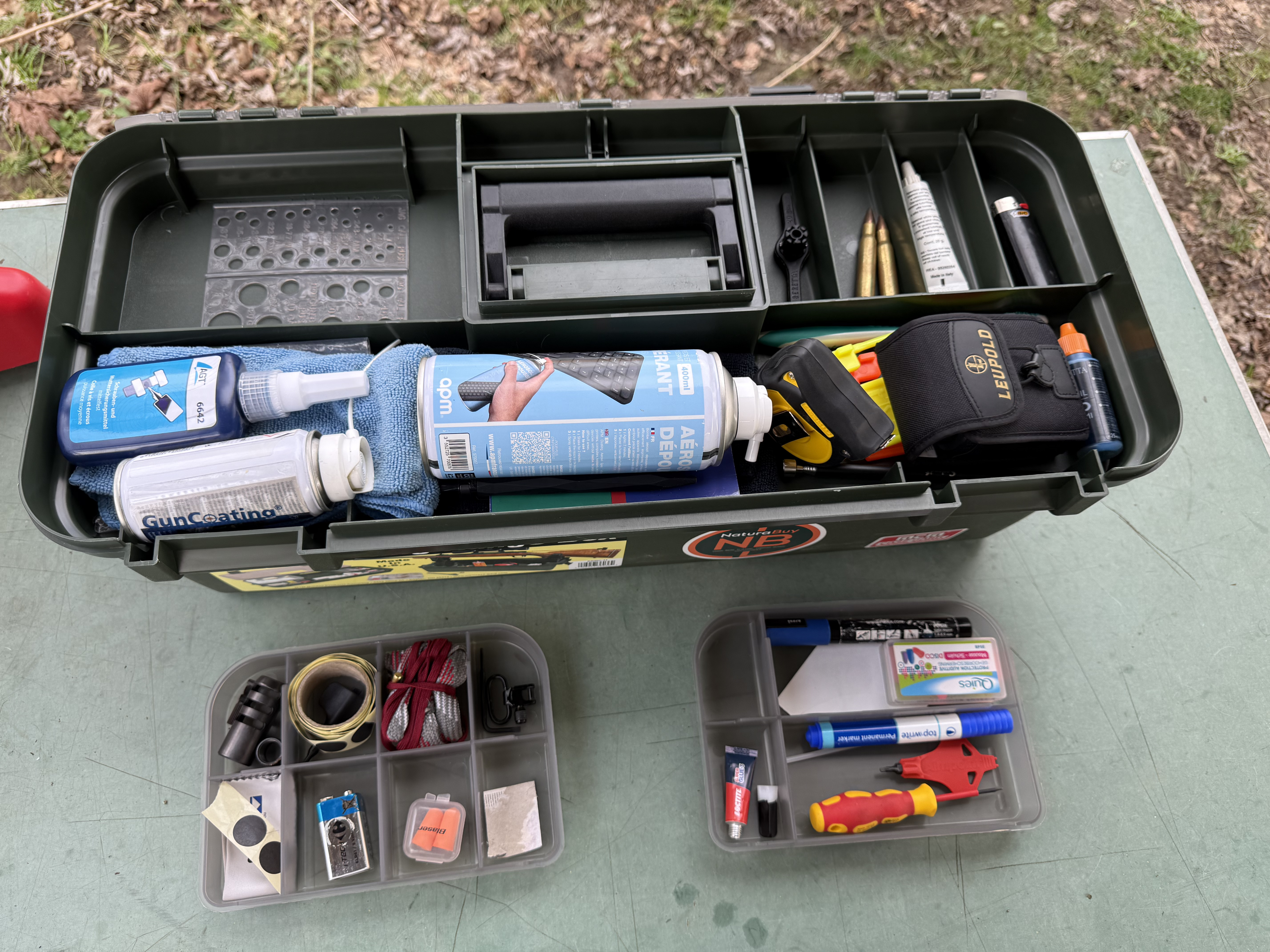 Pour le tireur qui vient avec plusieurs boîtes de munitions, son matériel de nettoyage, quelques outils, une lunette à vérifier ou une arme à régler, cette boîte simplifie franchement la vie. Au lieu de multiplier les contenants, on centralise tout. Premier point fort : la lecture du matériel est rapide, l’accès est direct, et l’on ne perd plus de temps à chercher une brosse, un chiffon, un tournevis ; entre deux séries, tout est à portée de main, dans un espace ordonné.