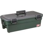 Au premier regard, la MTM Shooting Range Box annonce la couleur. Pas de design spécialement flatteur, ni de sophistication inutile : c’est un rectangle de plastique, de type boîte à outils, avec une poignée mobile. Moulée en polypropylène (un polymère chimiquement inerte, qui a l’avantage de résister à la corrosion), cette boîte inspire immédiatement une idée aussi simple que l’œuf de Colomb : tout avoir sous la main, au même endroit, du flacon de solvant jusqu’aux baguettes de nettoyage, en passant par les petits accessoires ou un casque de tir, qui finissent d’ordinaire éparpillés sur la table ou au fond d’un sac.