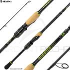 Le blank de cette canne est confectionné en carbone haut module qui vient de chez Toray, mondialement connu ! Le blank est composé de carbone haute densité IM30 et IM40 afin de proposer une canne très rapide, et très sonore. Avec une tête plombée, le moindre contact avec le fond et perçu immédiatement. Que dire d'une touche, c'est un coup de fusil ! La canne est idéale aussi de par sa nervosité pour animer par jerks et twitchs de petits poissons nageurs. C'est une canne mono brin, mais vu sa taille, l'encombrement n'est pas un problème et du coup l'action est vraiment parfaite. Le blank se courbe sur toute la longueur en cas de poisson combatif. La réserve de puissance dans le dernier tiers est très importante.