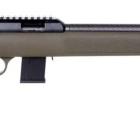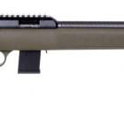 Cette R-22 est équipée d’une jolie crosse, en polymère vert kaki et non pas noir. La crosse et le devant son bien finis, sans trace de fabrication ni moulure. La poignée pistolet et une partie du devant comportent une zone granitée en surface qui améliore la prise en main et le grip. Une épaisse plaque de couche noire, ferme, est fixée à l’arrière de la crosse. Elle est très arrondie et maintient bien l’arme à l’épaule aussi bien pour le tir sur sac de sable ou bi pied qu’à bras francs. Le devant est assez long et bien arrondi sous le dessous afin d’offrir une prise en main agréable. Un court rail Picatinny à 4 slots est fixé à l’avant, permettant d’installer un bi pied très facilement pour des tirs précis sur bench ou au sol. Les attaches de grenadière et battant de crosse sont positionnés si vous souhaitez équiper l’arme d’une bretelle de transport.