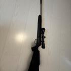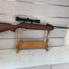 Même si la carabine est livrée en pack avec une lunette, elle possède des organes de visée ouverte rudimentaires mais qui permettent de tirer jusqu’à une vingtaine de mètres sur des canettes de soda. La hausse réglable en hauteur et dérive est munie d’une planchette à cran carré. Elle est bien placée et ne gêne pas lorsqu’on équipe la carabine d’une lunette de tir comme ici. Le guidon est monté sur un insert en polymère. Il est assez haut et ne possède pas de tunnel de protection ajouré.