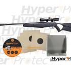 La lunette livrée avec ce pack est un modèle Center Point 4x32. Ce grossissement est assez répandu pour du tir de loisir et permet de tirer précisément jusqu’à près de 30-40 mètres sans problème. Le réticule de type Plex est assez fin et ne cache pas les petites cibles d’air comprimé ni les canettes de soda si vous vous amusez en plinking et fun tir. Le réglage de la lunette s’est très bien déroulé. Les clics (une valeur de clic d’1/4 de MOA) sont assez nets et malgré de très nombreux tirs ce réglage n’a pas bougé. C’est un modèle d’entrée de gamme. Vous pouvez bien sûr acquérir une lunette de meilleure qualité pour un budget raisonnable sur le site NaturaBuy !