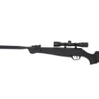 Fabriquée dans un solide polymère noir, la crosse de cette carabine Elite Mag-Fire Mission de Crosman ne passe pas inaperçue ! Elle est non seulement à trou de pouce, offrant une prise en main et une position de tir super confortable, mais en plus elle est ajourée à l’arrière de ce large trou de pouce. Surement pour gagner en esthétisme et surtout en poids. La carabine pèse tout de même 3,7 kg avec sa petite lunette 4x32 Center Point. Ce n’est pas une carabine pour enfant !