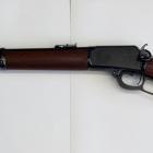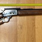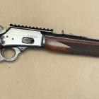 Pour l’anecdote, sous la crosse on retrouve le fameux Bullseye (œil de bison) des crosses Marlin qui traditionnellement est en noir sur fond blanc, ici l’œil de bison est devenu rouge. Ça n’est pas une gommette mais une petite pièce tubulaire en polymère.