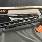 La crosse à trou de pouce et le devant de cette carabine M25 Snowpeak sont confectionnés en polymère noir très résistant, moulé d’une seule pièce. Il n’y a donc pas trop de risques de mauvais ajustages, de jeux et d’entrée de salissures entre les différentes parties. La poignée pistolet est assez droite et comporte des empreintes de doigts peu marquées mais qui offrent une bonne prise en main. Cette zone est structurée en surface pour améliorer encore la tenue de l’arme. Un sabot amortisseur fixé sur la crosse permet de bien épauler l’arme sans risque qu’elle ne glisse contre le tissu de votre veste. Il est légèrement alvéolé en surface.