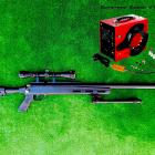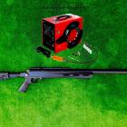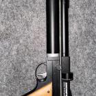 Il est fixe puisque c’est un modèle à air pré-comprimé, contrairement aux modèles de carabines à canon basculant. Il est en acier, rayé à l’intérieur afin de bien guider les diabolos de 5,5 mm. Il mesure 52 cm, un pas de vis sur lequel est fixé le réducteur de son puis une courte zone intermédiaire allonge la longueur totale, mais ils ne sont pas à proprement parlé le canon, le diabolo n’est plus guidé dans cette partie… Le canon est recouvert par un manchon métallique noir jusqu’à la bouche. Le réducteur de son vient se visser au bout, sur un pas de vis assez long et porte la longueur totale de cette partie à 71 cm de l’extrémité du RDS à la chambre. C’est un peu long mais bien efficace sur le terrain. La longueur totale de l’arme est de 119 cm.