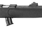 Aie, c'est le bémol de cette The Black OPS Soul de BO Manufacture. Le chargeur a une capacité de 10 coups, c'est très bien, il s'alimente très facilement. On dirait vraiment le chargeur d'une ancienne carabine CZ ou d'une Norinco. Il est assez fin et confectionné en tôle de métal. L'alimentation des 10 munitions se fait sans point dur. En revanche la finition du chargeur de ma carabine de test n'est pas extra. Le traitement de surface n'est pas assez dur et il est un peu rêche en surface. Du coup l'insertion dans le puit de chargeur n'est pas agréable et douce. Je chipote c'est vrai surtout vu le prix de la carabine. Une fois en place il tient bien dans le puit et l'arrêtoir de chargeur placé devant est bien accessible.