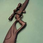 Pour le prix nous aurions pu avoir une crosse en bois de cagette comme on dit parfois, il n'en est rien ! Nous nous retrouvons avec une jolie crosse à trou de pouce assez bien finie. Il n'y pas de bavures ni traces de moulage. La crosse possède un large trou de pouce qui offre une très bonne prise en main sur la poignée pistolet très droite. L'index est bien dans l'axe lorsqu'il faut presser la queue de détente. Outre cet aspect moderne cette crosse est donc ergonomique. Elle est terminée par une plaque de couche en caoutchouc dur, bien strié horizontalement et qui adhère assez bien à la veste de tir. Le dos de la crosse est un peu en forme de dos de cochon qui permet de prendre un bon appui avec la pommette lorsque l'on vise.
