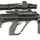 On remarquera alors le mécanisme du Steyr AUG qui reprend en partie celui de l’AR18 avec une culasse rotative et un piston à course courte.