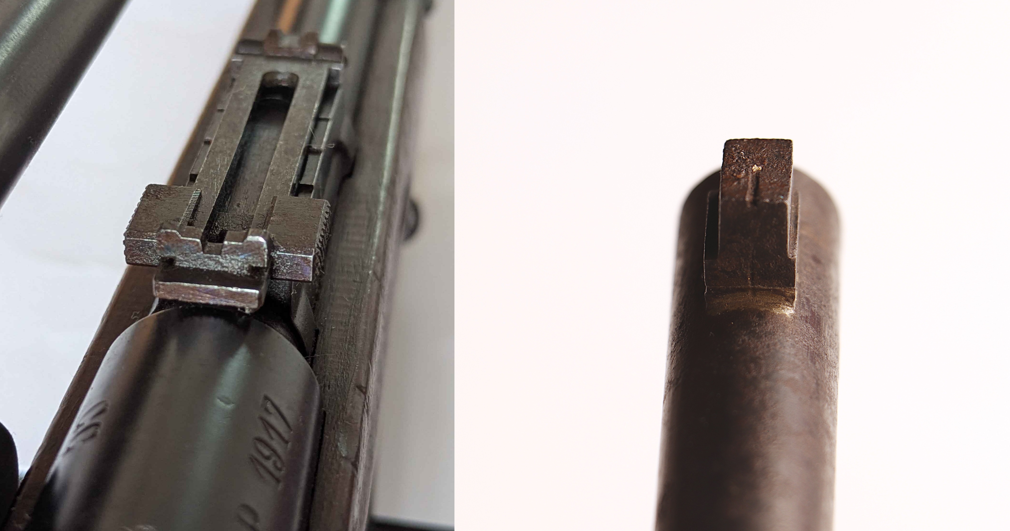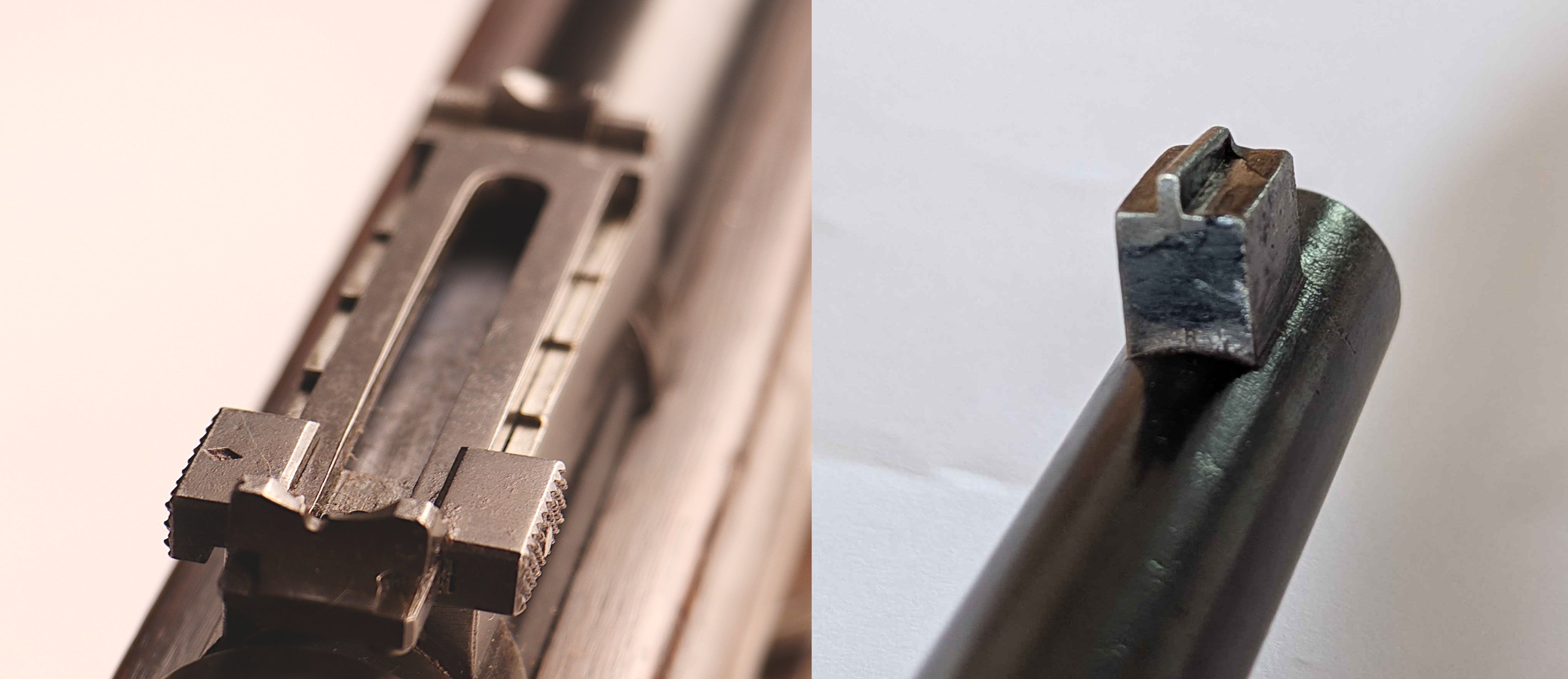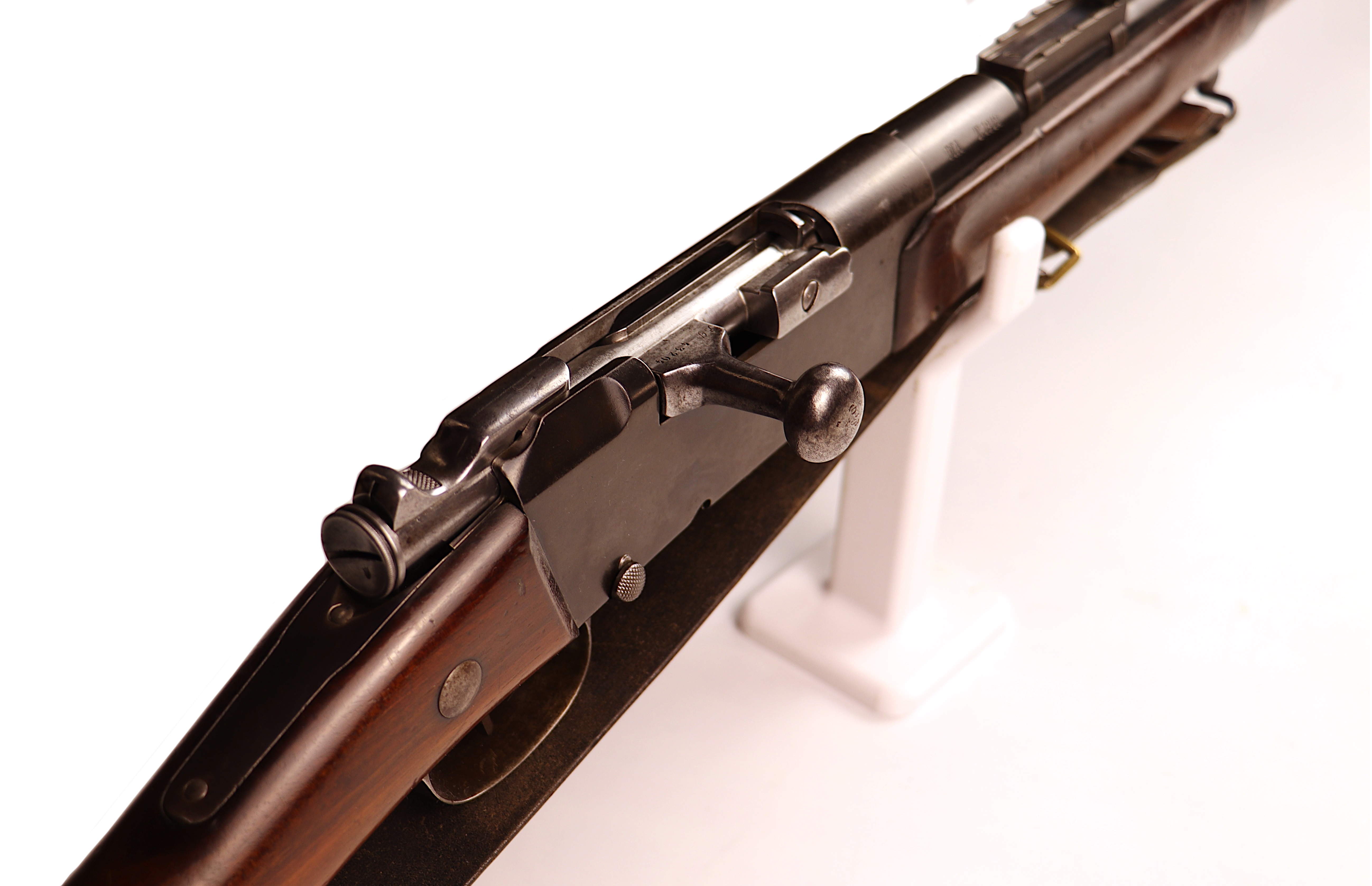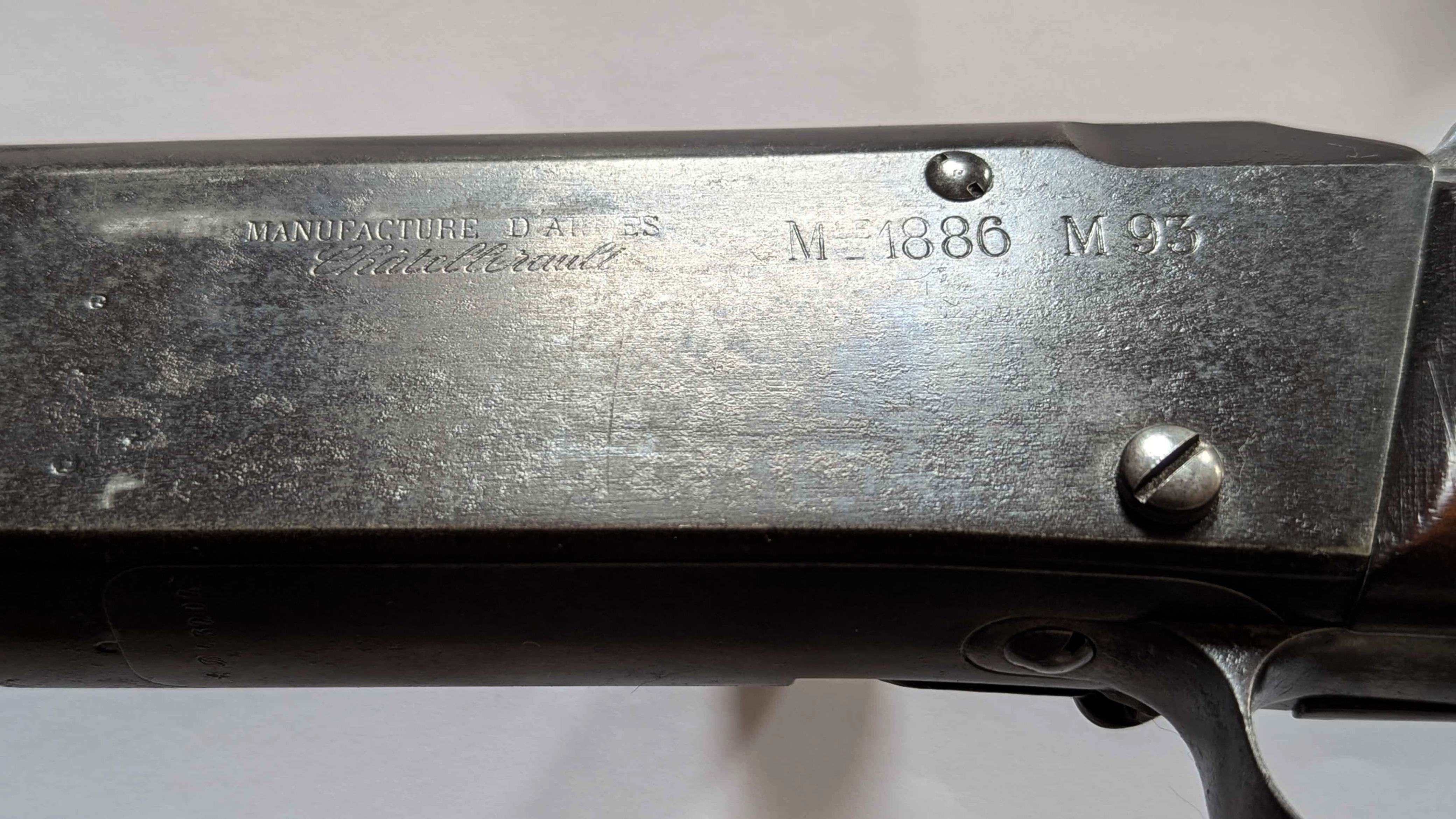 Dans les évolutions du fusil, on remarquera que la plupart des exemplaires sur le marché sont marqués ‘M93’ sur le côté gauche du boîtier : il s’agit de modifications apportées en 1893 et appliquées sur la plupart des fusils. La fixation de la hausse a été améliorée, la tête de culasse est modifiée pour l’évacuation des gaz en cas de rupture d’étui et le bouchon de culasse est redessiné pour faciliter le démontage. Enfin, en 1916, la hausse et le guidon ont été modifiés, pour une visée ‘carrée’ : le guidon est plat et dispose d’une fente comme sur les Berthier. On rencontrera donc ce type de guidon sur les fusils dont le canon a été changé durant la guerre.