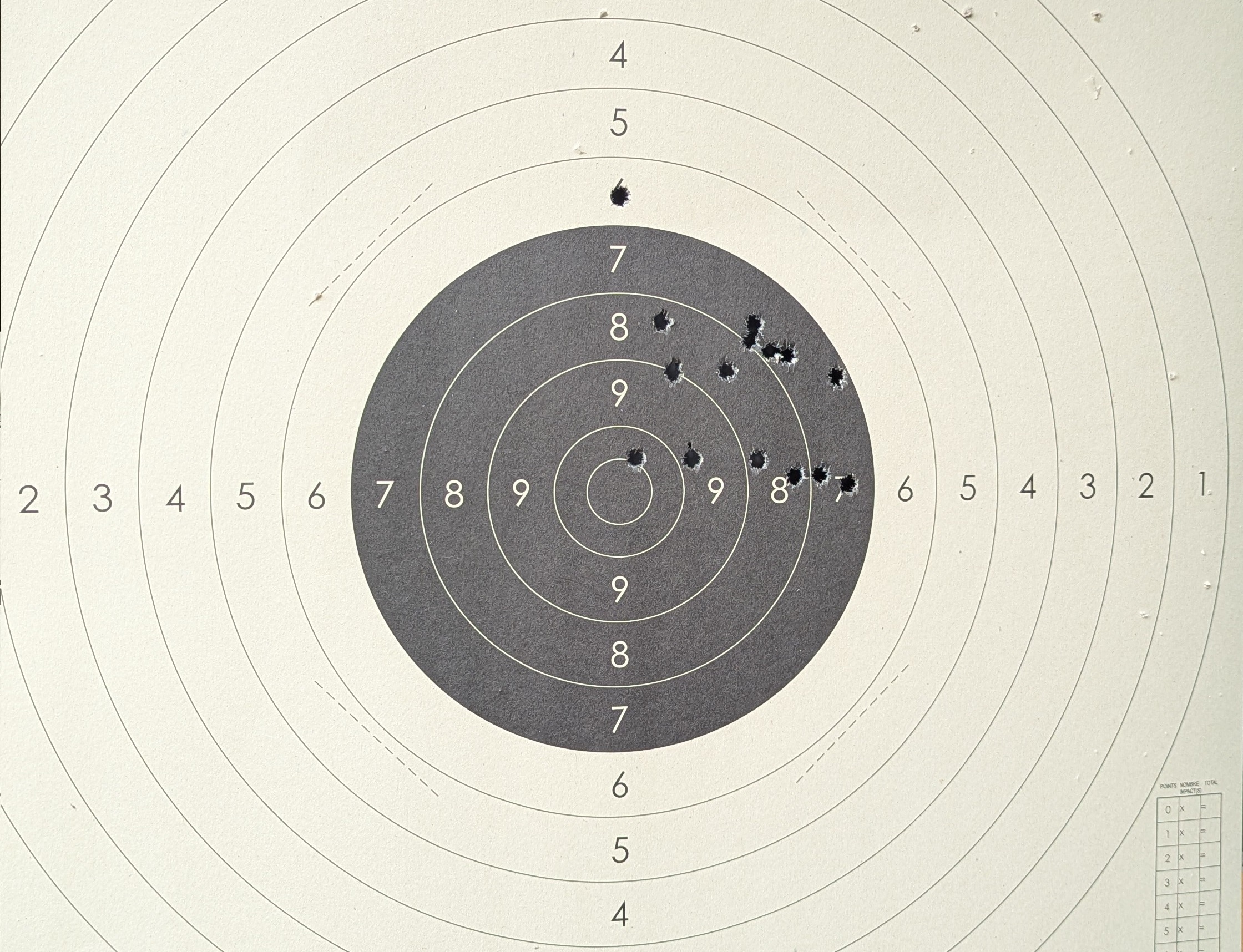 Si le Lebel est une belle arme élégante, néanmoins au stand vous constaterez qu’elle ne manque pas de défauts… Disons qu’on achète un Lebel pour son côté historique et non ses performances au stand, même si le fusil est loin d’être ridicule. Néanmoins, le premier point négatif est l’absence de poignée-pistolet. Ensuite la détente est… typique des armes réglementaires françaises avec un point dur immédiat, sans réelle course avant que le coup ne parte. Ce n’est clairement pas une détente match ! Quant aux organes de visées, cela dépendra si vous avez celle du 1er ou 2nd type: visée fine ou carrée. Étrangement, la visée carrée s’en sort mieux pour le confort du tireur, avec cette petite fente sur le dessus. La culasse, qui s’arme à l’ouverture, n’est pas non plus la plus fluide que l’on ait connu. Et pour terminer, le canon est assez fin et chauffe très rapidement : en seulement 15 cartouches, vous aurez un mirage, ce qui est évidemment très gênant si on envisage de faire le T.A.R. avec ce fusil ! Mais il faut bien comprendre que toutes ces considérations de tireur sportif ne sont finalement que secondaires par rapport au plaisir de tirer avec cette arme à haute valeur historique, et qui attirera forcément les curieux sur le pas de tir. Le fusil Lebel au stand, c’est avant tout un bon moment à passer plutôt qu’une séance de recherche de la performance.