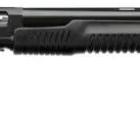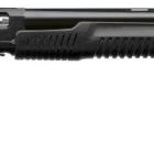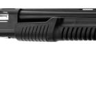 Le devant possède une forme un peu anatomique, cylindrique dessous et avec un petit renfoncement de part et d'autre au sommet de ce dernier. Il est assez épais, 4,9 cm. Le bouchon de tube magasin est cylindrique, il est quadrillé sur tout le pourtour et offre une bonne prise en main pour le visser et dévisser. Un anneau de grenadière est positionné au bout et permet de fixer la bretelle.