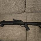 Le fusil pèse 3,143 kg ! Il est encore plus lourd que le SG68. Le métal est très présent sur ce fusil à pompe. L'installation des cartouches de CO2 n'a pas posé de problème. La notice est claire. Le fait de devoir ôter une petite pièce logée dans la poignée pistolet pour faciliter l'insertion des balles de caoutchouc dans le tube magasin est un peu plus contraignant. J'ai un peu peur de la perte rapide de cette pièce. Sachez toutefois qu'il est possible de s'en passer et de pousser les balles sans encombre dans le tube.