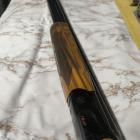 L'arrière de la crosse est très épais, 4,5 cm. Ce sacré bout de bois absorbe aussi une partie du recul ! Néanmoins ce n'est pas disgracieux. La poignée de type trap comporte un galbe pour accueillir la paume de la main. Le noyer est profondément quadrillé au laser, très bien fini, ce qui offre une bonne prise en main. La mise à bois crosse bascule est très régulière. Là aussi nous sommes loin des modèles de jadis ! La finition poncée huilée et sobre.