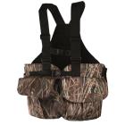 Ce gilet harnais comprend deux grandes poches amples, qui abritent deux cartouchières élastiques d’une contenance de 10 tubes chacune. A noter que les tubes sont destinés à des cartouches pour fusils à canon(s) lisse(s). L’intérieur du haut des grandes poches reçoit aussi le motif roseaux afin de permettre un camouflage optimal grâce au système de boutons pressions donnant la possibilité au chasseur de garder les poches ouvertes pour saisir les cartouches rapidement en action de chasse.