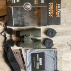 Les optiques Bushnell étaient jusqu'à présent essentiellement destinées au marché américain. Leur gamme comportait rarement des modèles dédiés à la chasse en lumière difficile. Il est vrai qu'Outre-atlantique on chasse surtout de jour. Afin de conquérir le marché européen où l'on chasse, dans les contrées de l'Est, le sanglier au crépuscule et au clair de lune, le fabricant américain a proposé des modèles crépusculaires à objectifs de 56 mm et, surprise, dont le prix reste inférieur à 500 euros ! Des modèles d'entrée de gamme donc. La couleur vert loden est agréable à l'œil même si le design de l'ensemble s'éloigne des lignes épurées et sobres des Legend et autres Elite. Le revêtement des tubes est plutôt anguleux et dérange un peu lors de la prise en main. Ils sont reliés entre eux par un pont unique et leur diamètre ne facilite pas l'accès à la bague de mise au point par l'index d'une main féminine par exemple. Par ailleurs lors de l'observation, les jumelles piquent du nez, le poids étant déséquilibré vers l'avant ce qui, si l'observation se prolonge nuit au confort.