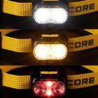Le corps de cette lampe torche mesure 8,4 cm de longueur et 2,7 cm de diamètre. Elle est cylindrique aux deux extrémités et aplatie là où se trouvent les leds. De part et d'autre deux capuchons vissants donnent accès d'un côté à la batterie rechargeable, de l'autre à la prise USB. La lampe frontale pèse 124 g nue, et 161 g une fois munie du système de support de tête élastique.