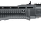 Le canon de ce fusil à pompe HDX est lisse. Il mesure environ 40 cm de longueur. Souvenez-vous que le canon d’un fusil à pompe mesure 36 cm et que celui du revolver HDR seulement 17. On devrait donc gagner en précision et peut être en puissance, nous le vérifierons lors de nos mesures. Le tube magasin contenant les billes de caoutchouc se situe sous le canon. Un orifice percé sous le devant de l’arme permet de charger les billes de caoutchouc.