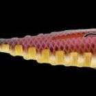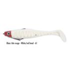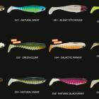 Le corps est fabriqué dans une matière issue à 85% d’huiles naturelles. Le plastifiant naturel est à base d’huile de colza, d’huile de lin et huile soja. On retrouve de l’attractant injecté dans la matière. La forme est celle d’un shad avec un large paddle. La matière souple n’est pas trop molle et s’avère même être assez résistante. Le corps est largement fendu pour pouvoir accueillir l’hameçon texan qui le leste. Le corps du leurre est entièrement strié et parcouru de cavités verticales (un des caractéristiques de la gamme Néo chez Delalande). La fente dorsale protège bien l’hameçon mais permet toutefois de bien libérer la pointe lors du ferrage. La fente ventrale est longue et large ; lors du ferrage aucun problème de déplacement du fer dans le corps du leurre. A noter que ce leurre reçoit un traitement UV (à l’exception du coloris blanc et rouge). La tête du leurre est affublé de deux grands yeux collés sur la matière souple.