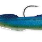 La tête plombée qui équipe ce leurre dans sa version montée est également aérodynamique. Les yeux 3D rouges sont bien visibles et protégés des chocs en étant un peu enfoncés dans le plomb. La hampe de l'hameçon est assez large et dégage bien la pointe du simple. Le corps est collé à la tête, ce qui évite que le leurre ne se désolidarise au lancer et sur certaines touches en bout de leurre.