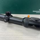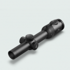 Notons tout d'abord que cette lunette est toute "mimi" avec son diamètre de tube assez fin. Le design est sobre, élégant et fonctionnel. Lorsque l'on ajuste le grossissement, on sent un clic à la position 1x en tournant la bague de zoom. C'est une bonne chose car ce repère tactile et très légèrement sonore informe le chasseur qu'il franchit la position 1 alors qu'il est en train de suivre le gibier des yeux ou de scruter le sous bois. En passant sous ce seuil, une vision les deux yeux ouverts reste possible, l'environnement est donc appréhendé au mieux. Notre première prise en main de cette lunette lors du salon IWA à Nuremberg nous avait immédiatement séduit. On a l'impression de plonger dans la lunette et dans le secteur observé.