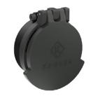 Les tournelles de réglage sont cachées sous un capuchon métallique fileté, c'est classique. Un joint thorique rouge assure l'étanchéité de cette partie. Suite à un premier montage il faut ajuster de quelques clics chacune de ces tourelles pour aligner la lunette finement avec l'arme. Les tourelles peuvent ensuite facilement être remises à 0. Il faut tenir la tourelle fermement et dévisser la grosse vis située en haut de chaque tournelle, la tête de cette vis à une forme optimisée pour pouvoir être desserrée à l'aide du culot d'une munition. La bague graduée tourne alors librement et peut être remise à 0 avant de resserrer.