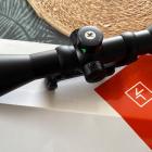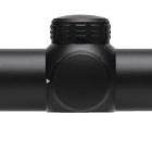 Le réticule équipant le modèle testé est le 4-Dot. Il est placé dans le deuxième plan focal, celui de l'oculaire. Il est donc invariant et conserve sur tous les grossissements la même dimension. Il couvre peu la cible à grande distance. Autre plus, la finesse et la propreté du point, qui facilitent encore les tirs à grande distance. Un bon point aussi pour le réglage de l'intensité du point lumineux. On ne peut faire plus simple et plus efficace ! La bague de réglage se trouve judicieusement placée sur la gauche du tube. En butée, la luminosité du point n'est pas activée. Dès que l'on tourne la bague (un peu trop dure), le point s'illumine, faiblement, proprement, et progresse jusqu'à son intensité maximale. Précisons que sur l'ensemble de l'échelle d'illumination, le chasseur trouvera la valeur qui lui convient en fonction de l'environnement. Sur l'intensité maximale et sur fond sombre le point perd de sa netteté mais la retrouve intégralement dès que l'on passe à un fond clair. Nous avons constaté qu'en réglant l'intensité sur sa valeur moyenne, on était parés pour tous les cas de figure. Dans la pénombre, l'intensité du point réglée à son minimum fait merveille. La lunette est bien entendu équipée de l'Automatic Light qui active et désactive l'illumination en fonction de l'inclinaison de l'arme, prolongeant ainsi la longévité de la pile.