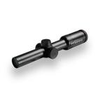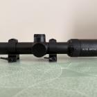 Les tourelleaux de réglage du tir permettent de modifier l'impact grâce à des clics qui valent chacun un quart de MOA, soit 7 mm, et non 1 cm comme sur beaucoup d'autres modèles. En tirant les tourelles vers le haut, on débraye le système pour procéder au zérotage de la lunette en positionnant le repère, après réglage, sur la graduation zéro. Les qualités optiques sont excellentes, l'image claire et contrastée, sans effet tunnel sur l'ensemble de la plage de grossissement. La lunette ne dispose pour l'heure que d'un réticule 4, soit trois barres épaisses, l'une verticale, dans le bas du champ, les deux autres horizontales, de chaque côté, avec une fine croix de cheveux au centre. Il ne s'agit pas à proprement parler d'un réticule dit de battue, qui devrait en principe mieux dégager le champ. Mais le réticule est invariant et reste constant quel que soit le grossissement. Il ne cache donc pas trop la cible, d'autant que les trois barres « épaisses » sont assez espacées les unes des autres. Le réticule fait en revanche merveille pour les tirs à distances autres que celles habituelles en battue, lors d'une utilisation à l'approche par exemple, que le grossissement 6 autorise.