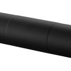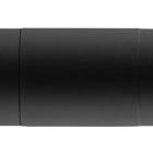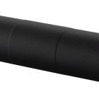 Il est confectionné en aluminium de qualité aéronautique et acier inoxydable pour les chicanes internes. L'acier inoxydable, métal très solide, va bien encaisser les fortes températures de gaz au moment où ils arrivent à la bouche du canon et où ils expansent dans le modérateur de son. La finition noire anodisée est très régulière. Elle semble assez solide. Le tube mesure 41 mm de diamètre et 222 mm de longueur. Il pèse 290 g. Toutefois étant donné qu'il est manchonnant le modérateur n'ajoute que 127 mm au bout du canon.