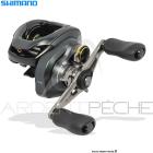 Comme sur tous les modèles de moulinets casting, ce Curado BFS propose trois freins différents. Le principal est un frein de combat à course micrométrique et doté d’une puissance de 3.5 kg apte à réussir un combat avec un poisson de taille courante, même un brochet d’un mètre peut être séché avec cette résistance. Ce frein utilise des rondelles de carbone mieux à même de supporter les températures de friction qu’un frein à rondelles métalliques et feutres. Un cliquet bruiteur a été installé sur ce frein afin de faire entendre ce bruit si particulier qui met en transe le pêcheur lors du combat. Le second frein, placé à coté de celui de combat est le frein de friction, il permet de régler la course de la bobine en évitant qu’elle ne s’emballe en fonction du poids du leurre. Pour terminer, de l’autre coté du moulinet on retrouve un frein inertiel magnétique qui ajustera la vitesse de la bobine à celle du leurre durant la phase de lancer. Ce frein utilise des aimants qui en se rapprochant ou s’éloignant de la bobine vont générer un champ magnétique qui va stabiliser la rotation. Pour plus de finesse en réglage, le fabricant à prévu deux aimants amovibles sur les huit qui composent ce frein. Le réglage se fait par une molette en partie ouverte sur l’extérieur de la flasque et graduée de 0 à 6. On accède à ce train d‘aimants en ouvrant la flasque latérale via son levier de verrouillage et en la faisant pivoter pour ensuite l’ôter.