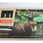 Certains pays ont déjà voté des lois interdisant l'usage de plomb dans les balles de chasse du grand gibier. Même en France il y a certains secteurs où ces balles en plomb chemisé avec un alliage de cuivre sont bannies. Les fabricants étoffent donc de plus en plus leur offre de projectiles sans plomb. Norma propose cette ogive Eco Strike. Le corps de la balle est formé en alliage de cuivre, mono-métallique recouvert d'un nickelage qui lui donne une finition parfaite et surtout améliore le coefficient balistique. Cette bonne conservation de la vitesse et donc de la trajectoire est aussi dû à l'arrière de la balle en forme de queue de bateau assez fuyant qui limite les perturbations de l'air à l'arrière de la balle durant le vol. Ce nickelage de surface évite aussi l'encrassement des canons par dépôt de cuivre dans les rayures.