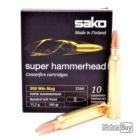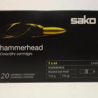 Sako encartouche de nombreuses balles différentes avec ou sans plomb. Parmi les chargements classiques et populaires la munition Hammerhead prend une bonne place. C'est une balle de conception très classique avec un noyau en plomb et une chemise en alliage de cuivre qui va en s'épaississant vers l'arrière de la balle ce qui permet un contrôle de l'ouverture de l'avant de l'ogive. Ce noyau en plomb est soudé à la chemise externe afin de conserver le maximum de poids de la balle lors de l'impact, même sur un gros os. Ceci va assurer une bonne pénétration dans le corps de l'animal et surtout une fois encore une ouverture régulière, un beau champignon. Ce n'est pas un coup de marteau (Hammer) mais un sacré coup de poing !