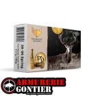 En 308 Winchester, calibre du test cette munition Classic Hunter de Fox Bullets la balle pèse 9,7 g soit 150 grains. La V0 est annoncée à 855 m/s avec une énergie de 3545 joules. A 100 m la vitesse est annoncée à 762 m/s, 676 m/s à 200 m et 595 m/s à 300 m avec une chute de la balle de 46,5 cm si l'optique est réglée à 0 à 100 m.