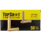 TopShot Compétition propose toute une gamme complète de calibres pour tireurs sportifs et chasseurs : 22 lr compétition, 22 lr standard, 9 mm, 45 APC, 357 Mag SJHP, 357 Mag FK 10, 6.5x55 FMJ, 7.5x55, 308 Win, 12/70 Skeet et 12/70 Trap.