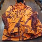 Nous avons testé cet ensemble dans des conditions difficiles : landes de bruyères, vent glacé, bourrasques de neige. Et nous n'avons pas eu froid ! Le tissu est souple et assez silencieux. Les empiècements donnent une belle ligne au produit, le noir mettant en valeur le camo motif surréaliste créé par les designers de Solognac. Les motifs se fondent dans des environnements variés, tant forestiers que rocheux. Les poches ne sont pas immenses mais bien positionnées. L'imperméabilité a été vérifiée... sans soucis. Les finitions sont bonnes, la capuche protège bien, bref du très bon à tarif Decathlon !