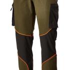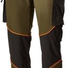Le pantalon est confectionné en polyester 100%. Il possède une bonne élasticité ce qui donne un confort et une aisance supplémentaire une fois le vêtement porté. Le Javelin est composé de trois couleurs de tissu vert, noir et orange. Le orange haute visibilité ressort nettement sur l’ensemble. Le pantalon est doté de deux poches reposes main classique mais également de deux vastes poches cargo munies de zips ce qui permet de garder à l’abri et en sécurité clés de voiture, papiers ou téléphone.