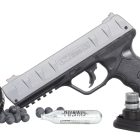Notez qu'aucune pièce ne coulisse ou n'est en mouvement comme sur certaines copies CO2 airgun ou airsoft. La puissance maximale du gaz est destinée à la projection des billes de caoutchouc et non à reproduire le fonctionnement d'une arme réelle.