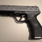 La poignée est épaisse, elle mesure 5,2 cm de largeur et 3,3 cm d'épaisseur. Les faces avant et arrières comportent des stries verticales qui assurent une meilleure prise en main. Le dos de la crosse est assez droit avec une queue de castor très prononcée comme sur le Beretta, ce qui permet de bien chausser l'arme et d'avoir une bonne butée supérieure.
