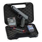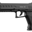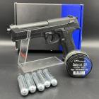 Ce pistolet Alfa 1.50 est doté d'un système de percussion d'urgence de la cartouche de CO2. La base de la poignée pistolet, qui imite le talon d'un chargeur amovible du Beretta 92 se dévisse afin de pouvoir insérer la sparklette de CO2. Il suffit ensuite de revisser le bouchon muni d'un joint. Mais dans cet état l'arme n'est pas prête à fonctionner. Il faut percuter manuellement la sparklette en tapant ce bouchon avec le plat de la main ou contre un objet dur pour libérer le gaz CO2 contenu dans la cartouche et faire fonctionner l'arme ! Lorsque le gaz s'échappe le chien externe, à l'arrière de la glissière, recule de quelques millimètres et un point rouge apparait, indiquant que l'arme est prête à tirer ! Vous pouvez donc conserver l'arme chez vous, chargée avec sa sparklette mais sans risque de fuite du gaz et donc de perte de puissance dans le temps !
