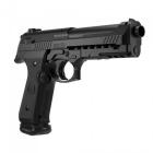 On retrouve un guidon assez gros et une hausse à cran carré. Les deux sont fixes et moulés dans le corps du pistolet. La prise de visée est rapide mais il vous faudra donc vous contenter du point d'impact pré réglé. Bon, en même temps, pour tirer sur une personne à 4 ou 5 mètres, distance moyenne en cas d'intrusion dans une maison, cela convient bien. Sinon, vous pouvez toujours fixer une lampe tactique équipée d'un laser sur le rail Picatinny moulé sous le canon. Vous pourrez alors régler la hauteur et la dérive du laser et donc vous assurer des tirs beaucoup plus précis !