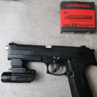 En visée ouverte cet Alfa permet de très bons groupements à environ 5 mètres. Distance normale d'un tir dans le cadre de la défense du domicile… Une fois équipé de la lampe Olight Baldr et son petit laser le gain de précision est réel ! Cette lampe à usage tactique est équipée d'une embase pour rail Pycatinny ou Glock. Elle offre un bon faisceau lumineux et une visée précise avec le laser. C'est un bon complément pour ce type de produit.