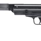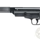 La poignée pistolet est confectionnée en polymère noir avec de larges empreintes de doigts moulées en surface afin d’améliorer la prise en main de l’arme. Le pontet de même que le bas de la carcasse sont aussi en polymère.