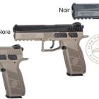 Il existe trois versions de ce modèle de pistolet CO2, une de couleur noire que nous avons testé, nommée Duty, puis une bicolore noire et sable nommée DT pour Dual Tone FDE et celle très à la mode de couleur sable ou FDE.