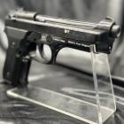 La queue de détente est noire, large et lisse. Elle est abritée dans un pontet assez vaste et qui comporte la forme du modèle 92F qui offre une meilleure préhension à deux mains avec une forme concave du pontet et des stries afin d'accueillir l'index de la main faible. Les poids de départ sont élevés en double action, beaucoup plus agréables en simple action…Rappelons toutefois que ce n'est pas une arme réelle ni de tir sportif, le poids des départs n'est donc pas un souci. Et à trois heures du matin, sous la pression d'une intrusion ce poids de départ un peu lourd n'est pas un souci.