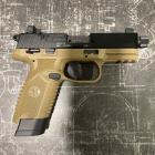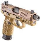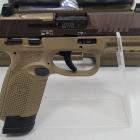 La glissière du FN 502 est de type OPTICS-READY, c’est-à-dire d’une glissière aménageable qui lui permet d’être équipé d’un point rouge. D’ailleurs, ce pistolet est fourni avec 4 plaquettes (ou embases) différentes interchangeables dont une qui déjà monté sur l’arme et qui ne permet pas l’ajout d’accessoire. Les autres 3 autres plaquettes permettent l’ajout d’un viseur point rouge. Selon le fabricant, vous pourrez ainsi opter pour les marques Trijicon, Docter, Vortex Venom et Shield RMS car les plaquettes sont prévues pour.