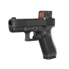 Les versions Optic Ready de la génération 6 voient également évoluer le système de fixation des points rouges. Le système MOS (Modular Optic System), utilisé sur les générations précédentes, disparaît au profit d’un montage direct sur la culasse associé à des plaques adaptatrices fournies dans le kit. Cette évolution vise notamment à améliorer la solidité du montage, certains utilisateurs ayant observé des cas de cisaillement des vis avec le système MOS lors d’un usage intensif. Les plaques adaptatrices permettent d’installer différents modèles d’optiques tout en conservant la possibilité d’un montage direct sur la culasse. Cette configuration présente également l’avantage de positionner le point rouge plus bas sur la ligne de visée, ce qui améliore l’acquisition de la cible. On peut d’ailleurs imaginer que cette évolution ouvrira la voie à l’apparition d’organes de visée adaptés permettant un co-witness avec les points rouges. À ce stade, les organes de visée fournis d’origine restent identiques aux générations précédentes et sont toujours réalisés en polymère.