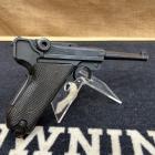 Le démontage s’effectue en tenant avec la main droite les oreilles de la genouillère plaquées contre la carcasse, puis on fait basculer le levier de verrouillage vers le bas afin de libérer la portière de démontage. Ensuite, on relâche la main droite et on retire vers l’avant l’ensemble canon-culasse. La genouillère s’enlève simplement de la partie supérieure de l’arme en poussant du bon côté le tenon, qui n’est finalement maintenu que par lui-même. Le démontage du percuteur demande un peu plus de dextérité avec l’aide d’un tournevis, il suffit de faire tourner d’un quart de tour la tige guide du percuteur. Attention à ne pas laisser s’échapper la tige guide sous peine de voir aussi son ressort s’échapper et se perdre… Néanmoins, ce démontage sera toutefois nécessaire pour bien nettoyer votre Parabellum.
