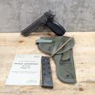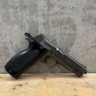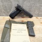 Dès 1946, un cahier des charges est établi et c’est vers 1950 que sont testés différents pistolets, de la MAT (Tulle), de la MAS (Saint-Etienne), mais aussi de la SACM (Société Alsacienne de Construction Mécanique) et de SIG (Neuhausen, en Suisse). Pour ce dernier, rien d’étonnant puisque le PA1935A a été conçu par un Suisse, et on voit tout de suite que l’allure générale du P210 (ou P49) est très proche. Il paraitrait même que le pistolet de chez SIG a été acheté et testé sans que la firme suisse soit au courant…