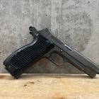 La prise en main pour le tir à deux mains est bonne. Les organes de visées sont par contre fixes, dommage que le guidon ne puisse pas être déplacé au latéral, ne serait-ce que pour corriger un éventuel défaut. Cependant, le guidon carré vient parfaitement se positionner dans le U de la hausse, dont le profil usiné dans la culasse, est bien pensé avec un canal long mais plus ouvert d’un côté pour une bonne luminosité.